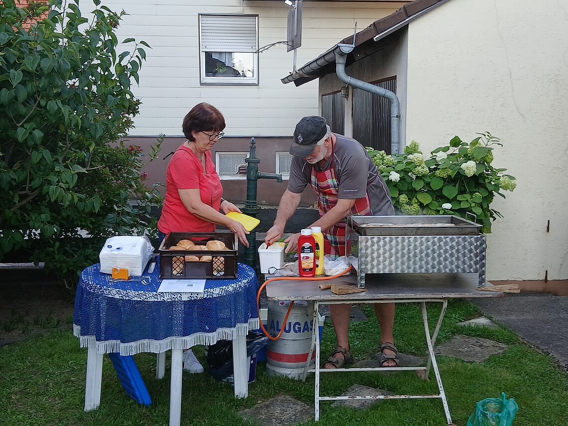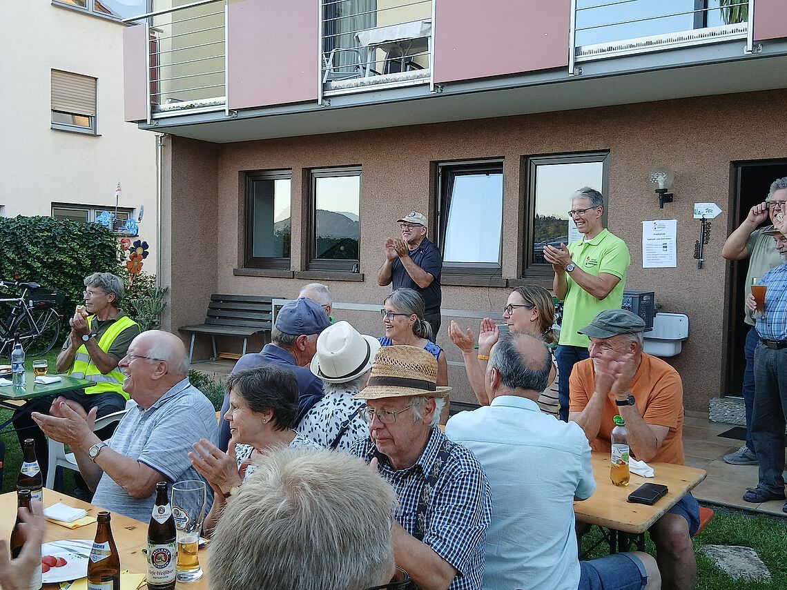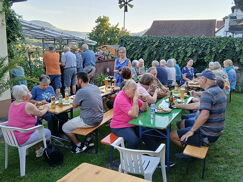 Den Ausklang des Abends bildete ein gemütliches Beisammensein, bei dem die Gäste verschiedene Tomatensorten und selbst angebaute Gurken bei einem Vesper und bestem Sommerwetter genießen konnten.